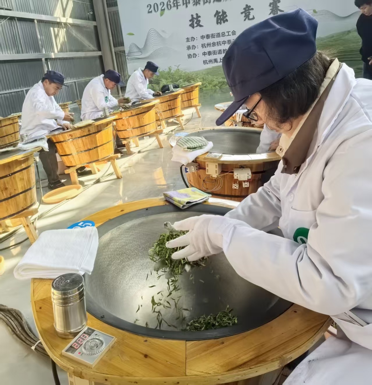 近日,一场以茶为媒、以技会友的春日盛会——扁形茶手工炒制技能竞赛,在杭州市余杭区中泰街道农事服务中心火热举行。辖区20余名制茶高手齐聚一堂,上演了一场展现匠心与传承的精彩对决。