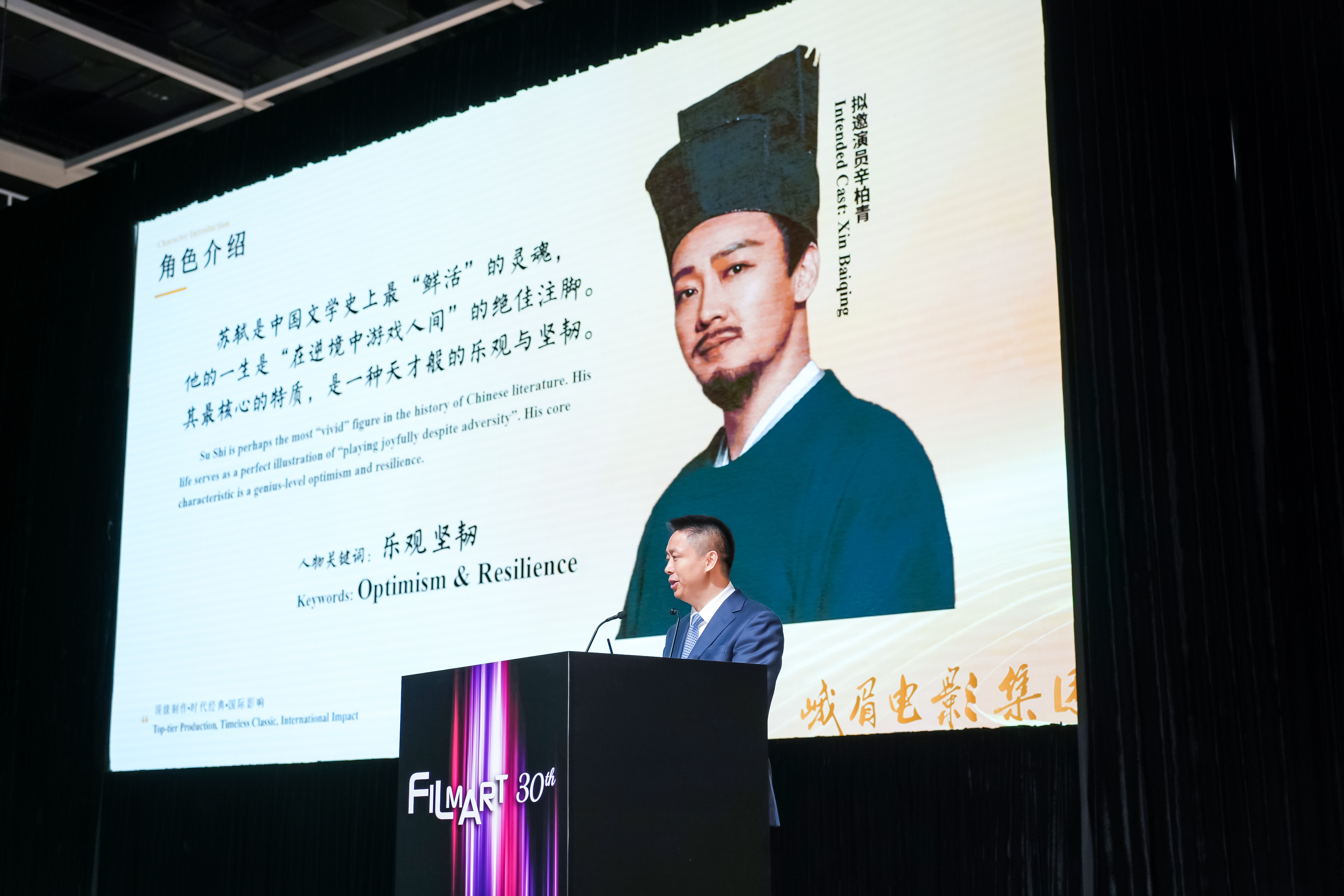 峨眉电影集团党委书记、董事长张荣发布了电影《苏东坡》项目,该片拟邀中国国家话剧院院长、一级导演田沁鑫担任编剧、导演,力邀霍廷霄、陈顾方、王丹戎等顶尖幕后团队加盟,力图打造一部展现东坡文化的时代经典;电影《八仙》导演牟正洋、制片人曹林林分享了创作初衷,该片融合奇幻与东方美学,由华人影业旗下成都画梦成帧影视公司制作出品,将于2026年暑期上映;由四川大路影业有限公司等联合出品的电影《二手球星》出品方代表登台推介,展现体育题材的青春活力。